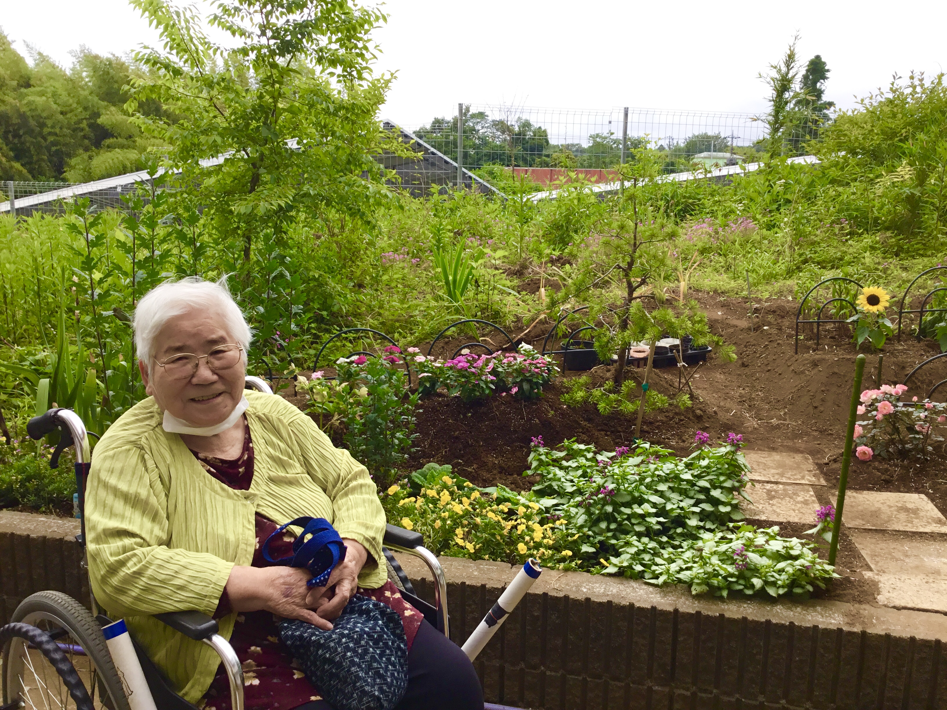 庭でのお花の観賞中のひと時。